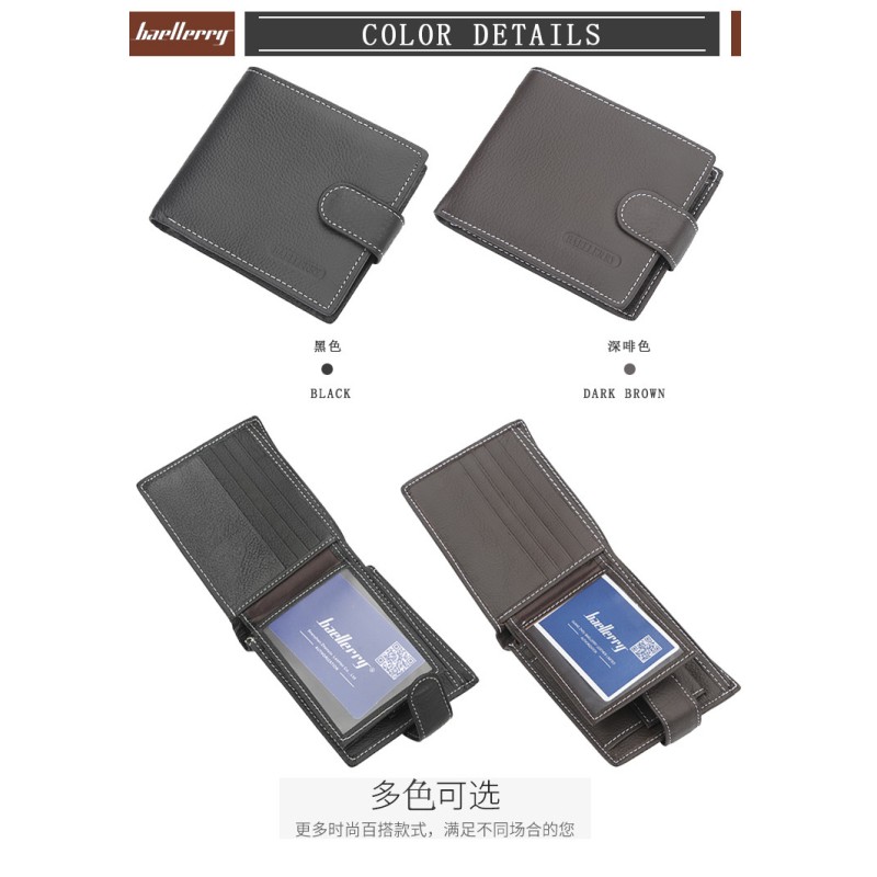 The BAELLERY wallet is a stylish and practical accessory for men. Made from high-quality genuine leather, this wallet has a soft and durable feel that is sure to last for years. The wallet is designed with a short length, measuring 9.5cm in length and 12cm in height, making it easy to carry in your pocket or bag. The interior of the wallet features multiple compartments, including slots for credit cards, a coin pocket, a passcard pocket, a note compartment, and a photo holder. This makes it easy to keep your important items organized and within reach. The wallet is also lined with polyester to ensure a smooth and comfortable feel against your skin. The wallet has a stylish and simple design, with a pattern type that is not specified, making it a versatile accessory that can be paired with any outfit. It is secured with a hasp closure, keeping your items safe and secure. This wallet is an excellent choice for anyone looking for a practical, yet fashionable accessory to add to their collection.